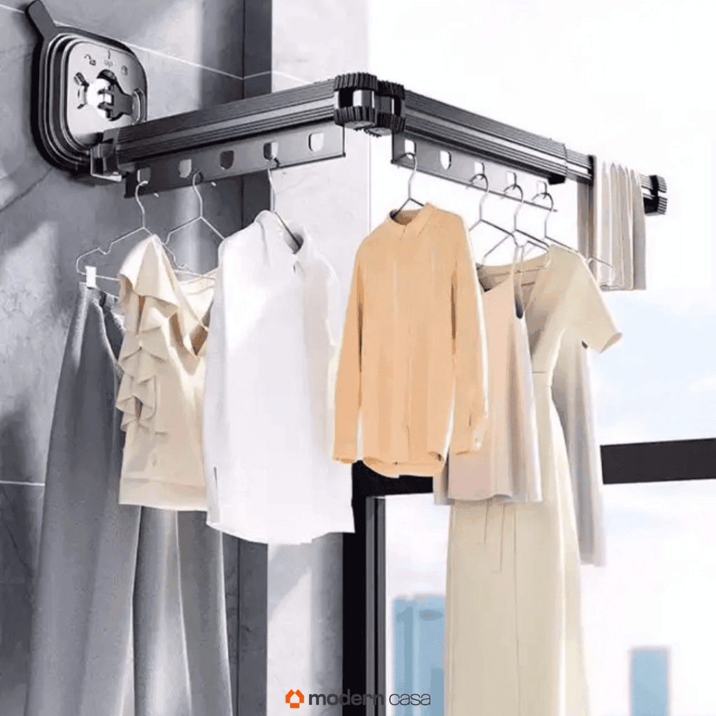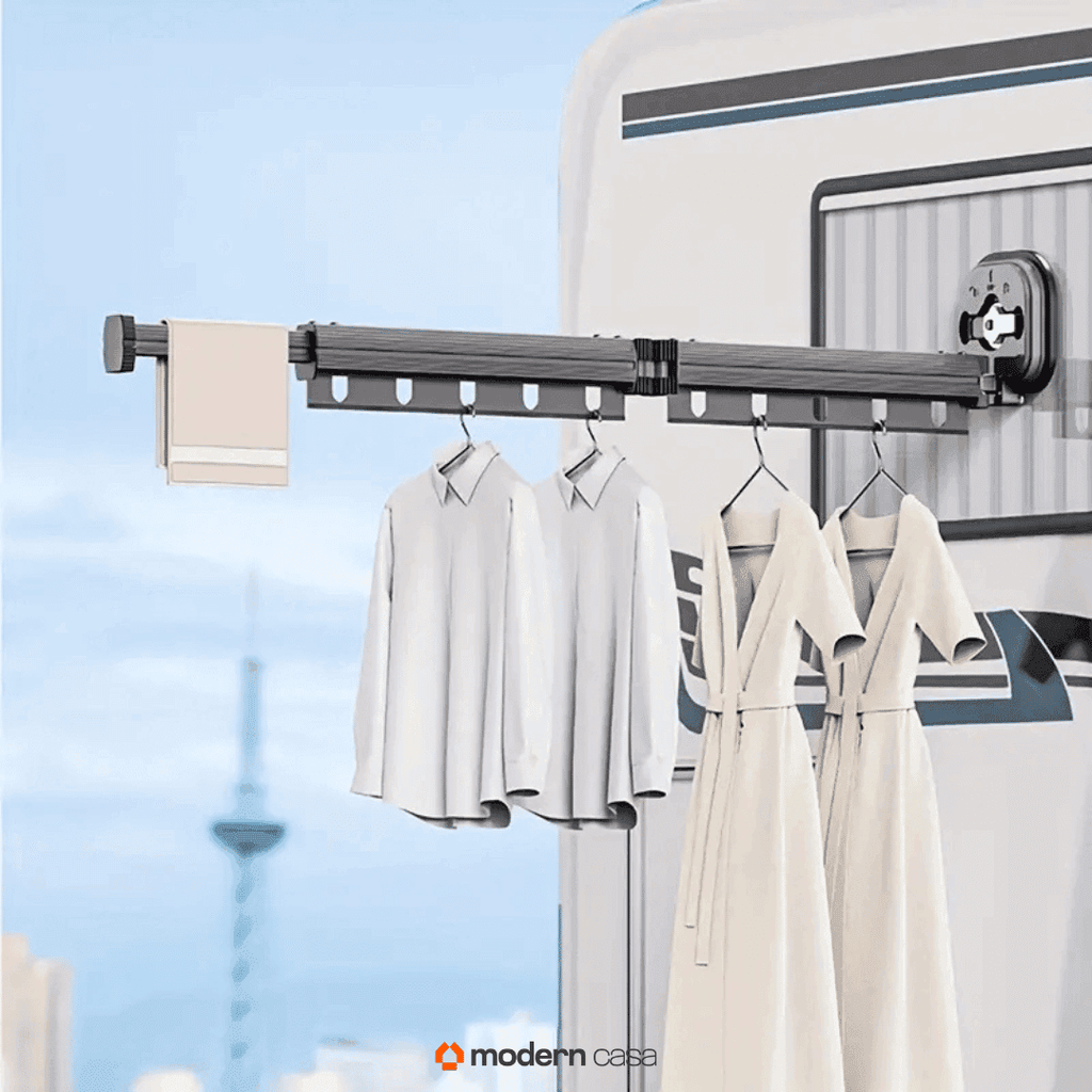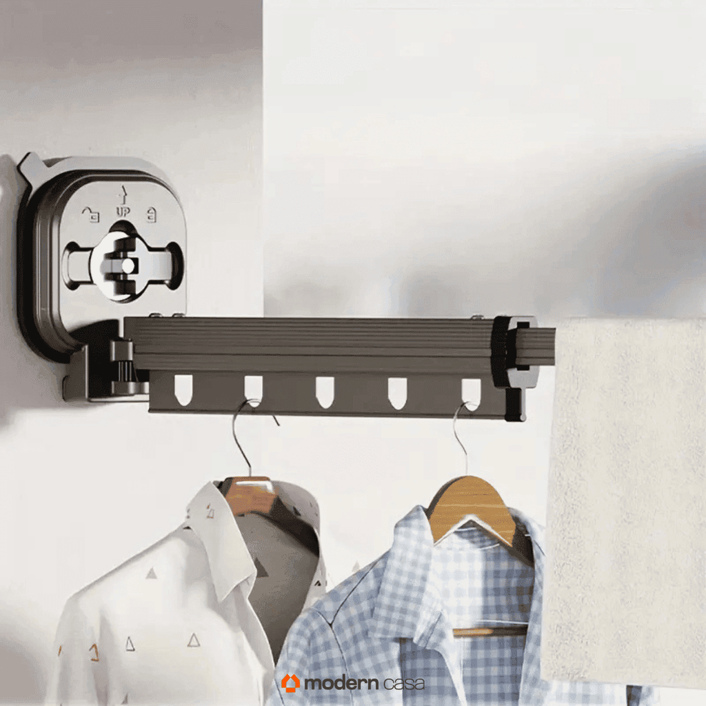 Design Invisível: Quando fechado, este varal praticamente desaparece, deixando seu espaço com uma aparência limpa e organizada.