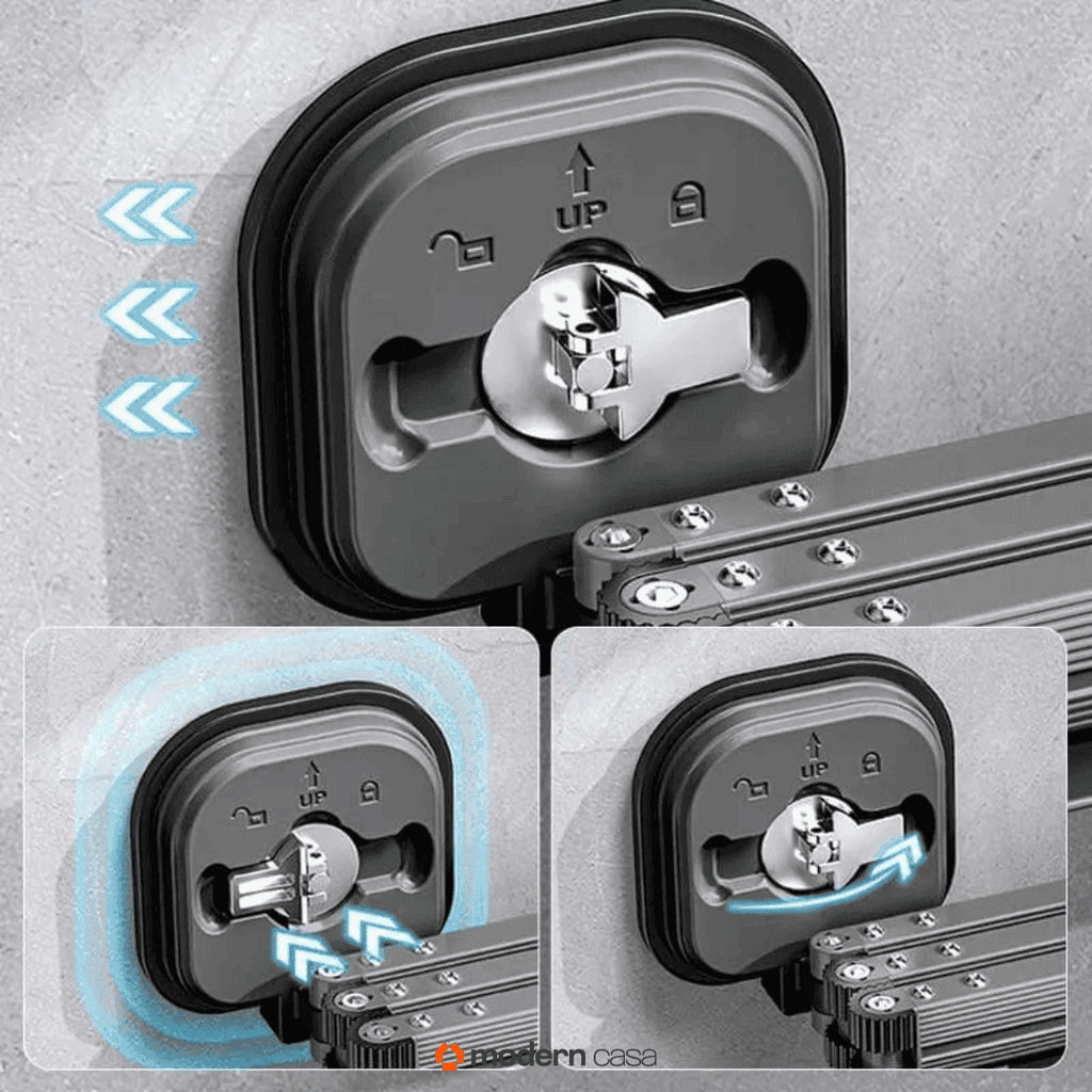 Sua tecnologia de fixação por ventosa proporciona uma aplicação rápida e fácil em qualquer superfície lisa, mantendo suas paredes intactas e sem danos. A versatilidade do gancho de parede permite o ajuste do comprimento do varal conforme a necessidade, ocupando um espaço mínimo quando não está em uso.