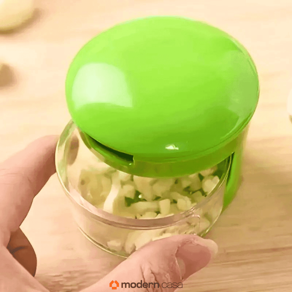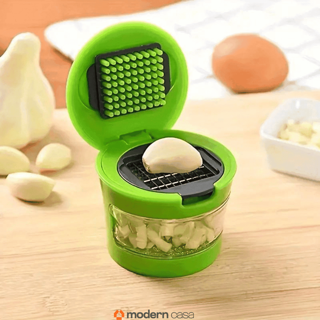 Com o Cortador e Amassador de alho com armazenamento você não precisa mais gastar tempo picando e cortando o alho, deixando suas mãos com odor por vários dias e tornando o processo de cozinhar mais lento.