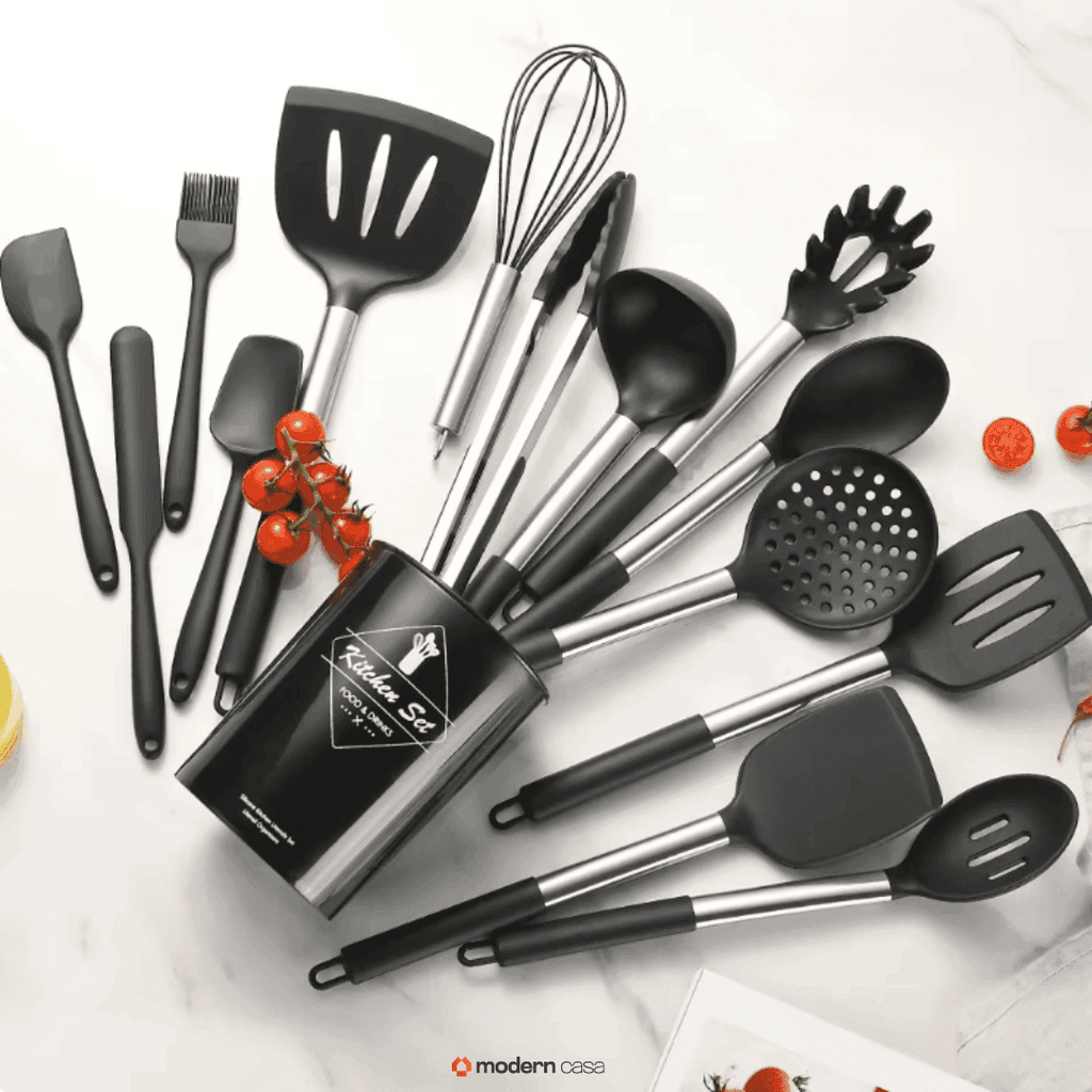 Cada utensílio foi projetado para atender às suas necessidades na cozinha. Desde soluções até colheres de medição, este conjunto multifuncional tem tudo o que você precisa para preparar suas refeições favoritas.