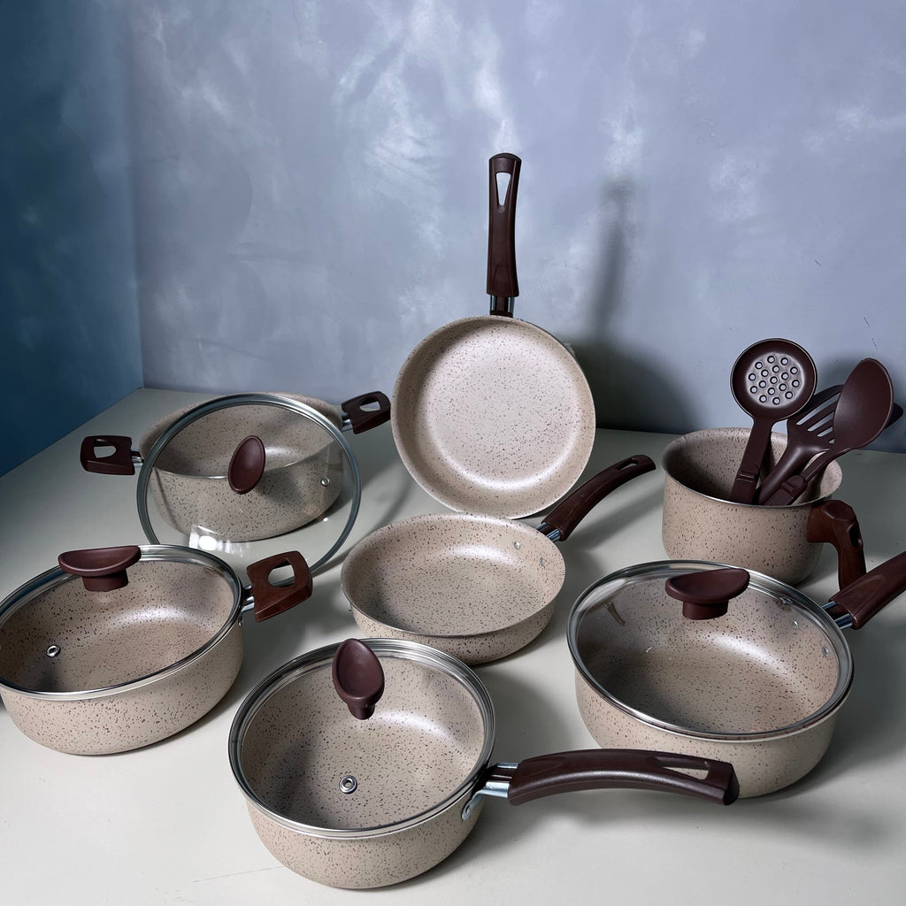 Fáceis de limpar, pois o antiaderente impede que os alimentos grudem. Utilizáveis em fogão a gás e compatíveis com máquina de lavar louças.
