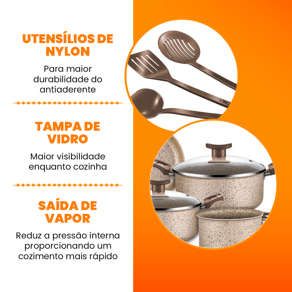 Teflon com 05 camadas que permite cozinhar com menos óleo.