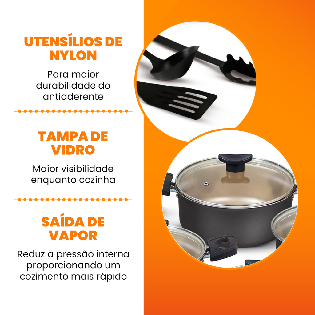 - Acessórios em Nylon, que ajudam a manter o antiaderente intacto por mais tempo.
