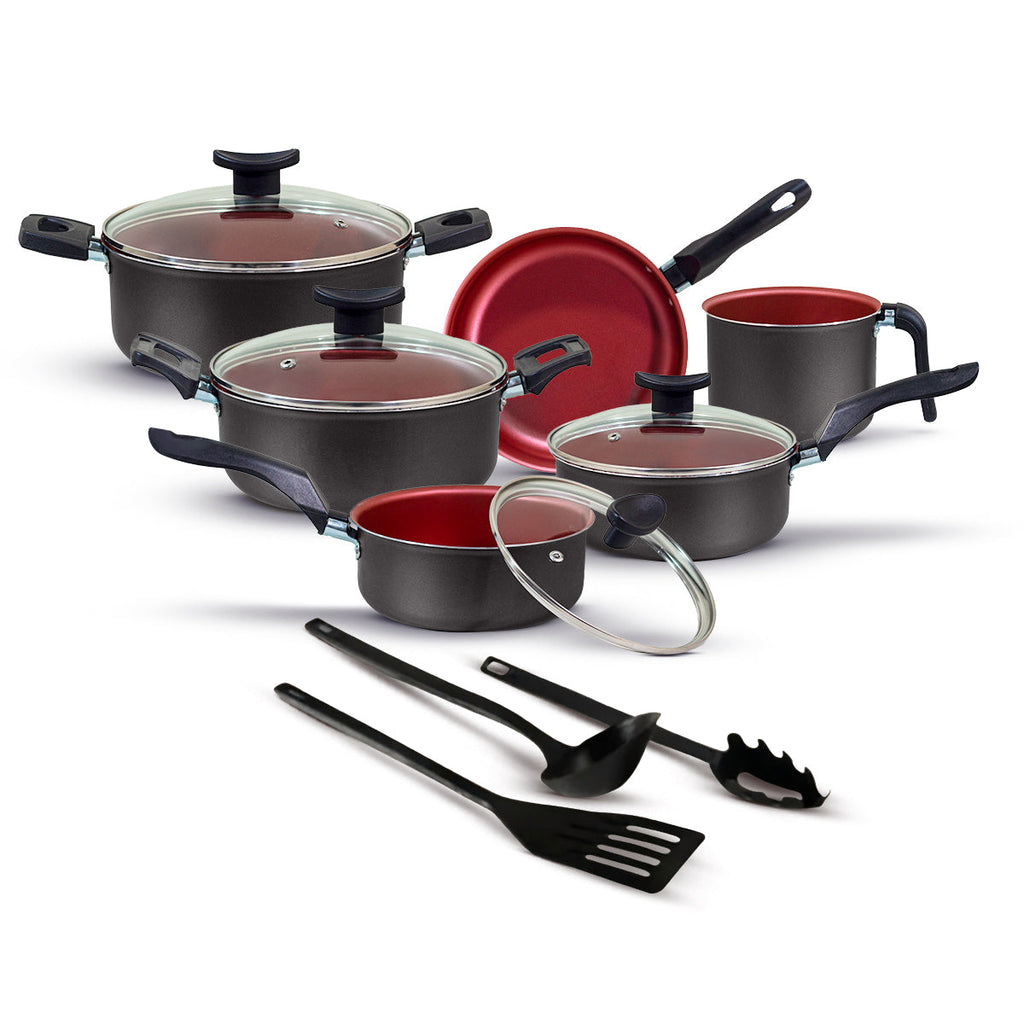 O Conjunto Trofa – Marpal 9 Peças traz modernidade e praticidade para sua cozinha com excelente custo-benefício. Suas panelas possuem 5 camadas de revestimento antiaderente com espessura de 1,2 mm, proporcionando durabilidade e uma limpeza fácil. As tampas de vidro com saída de vapor oferecem visibilidade durante o cozimento, e os pegadores de baquelite antitérmicos garantem segurança no manuseio.