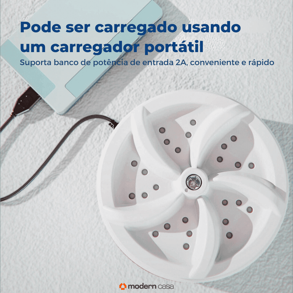 Portátil e Compacta: Com apenas 10 cm de diâmetro e alimentação via cabo USB, você pode levá-la consigo em viagens de negócios, acampamentos ou para qualquer lugar onde precise lavar suas roupas.
