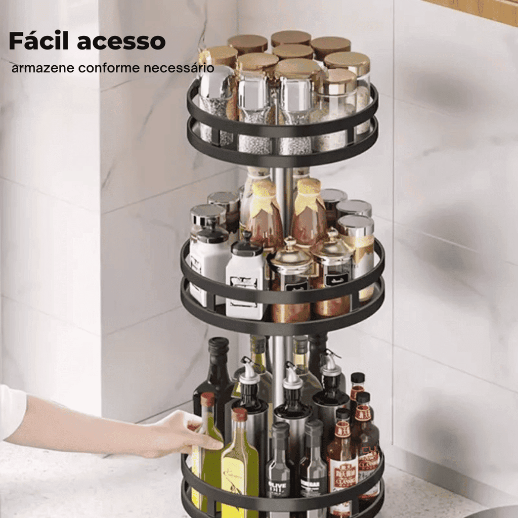 Transforme sua Organização com Estilo e Praticidade! Diga adeus à desordem com o Organizador De Condimentos e Porta Temperos Rotativo.